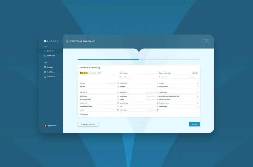 Het vervangt papieren boekjes én de complexe merkportalen met uiteenlopende systemen en procedures. Gewoon onderhoud uitvoeren, aanvinken wat je gedaan hebt, en klaar. Alles digitaal geregistreerd, gekoppeld aan het kenteken en professioneel overdraagbaar naar de klant.